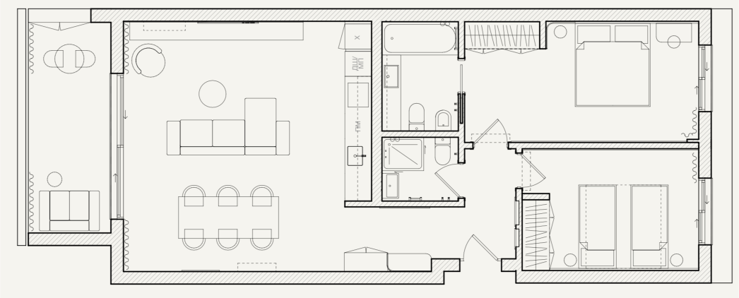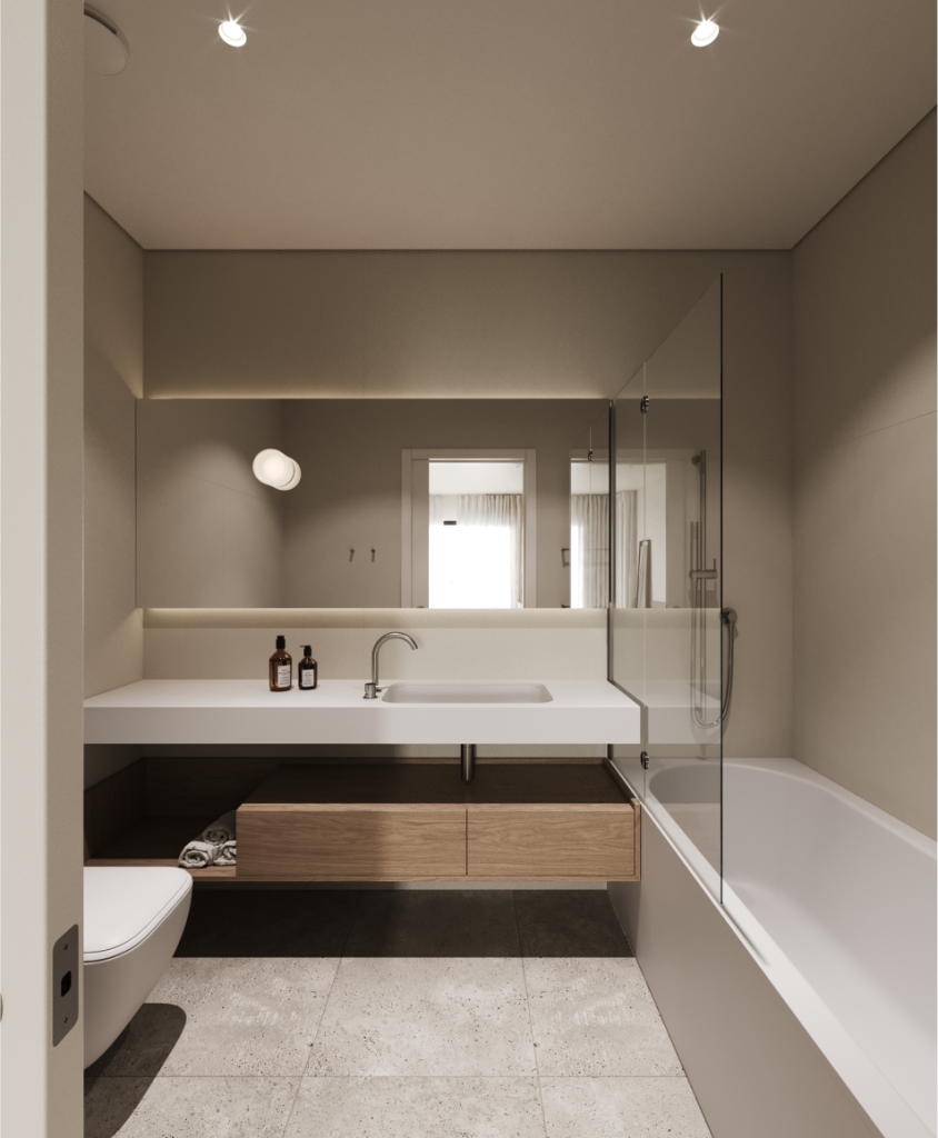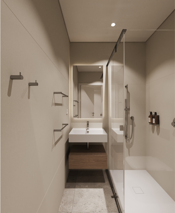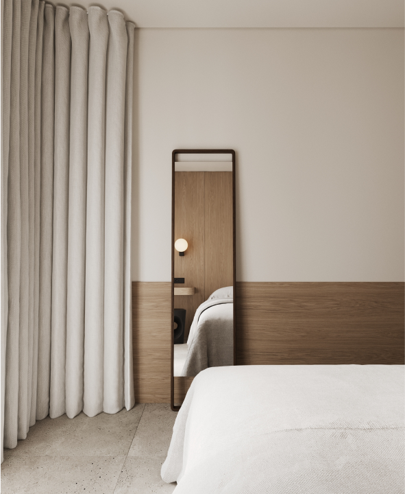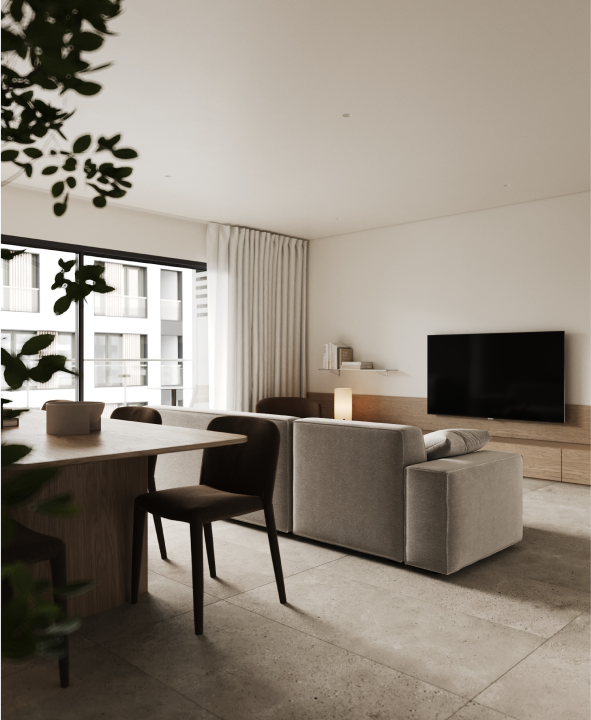 We added colors, texture, furniture and elements necessary for a comfortable stay to the almost finished apartments.